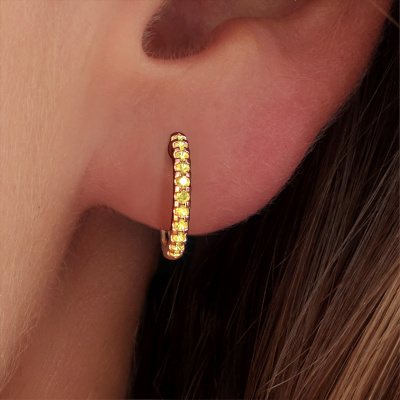 Each modern woman should own her own pair of classic hoop earrings. Buy them from DiamondsByMe. In order to create our exquisite jewels, our expert goldsmiths use the best precious metals and the finest gemstones. Take this classic rose gold yellow sapphire set of Jackie 12.5 mm A hoop earrings, for example. Each yellow sapphire is selected with great care, because we believe your hoop earrings should only be adorned with the finest yellow sapphire gemstones. Our artisan goldsmiths create your hoop earrings in our own crafting studio and they set the yellow sapphire in the hoop earrings with the utmost care. Subsequently, they are crafted and polished until it is evident: the perfect hoop earrings are done! The Jackie 12.5 mm A earrings are passionately made by one of our master goldsmiths.. Customized classic elegant hoop earrings are the perfect gift! New exquisite designs are added daily by our team of passionate goldsmiths. And each design can be customized. Simply customize the precious metals and the colour of gemstones which will be used, for example. This makes your design of the classic Jackie 12.5 mm A hoop earrings truly unique! After receiving your order, our goldsmiths will passionately start the creative process of making your hoop earrings in our own studio. Because we don't have a big stockpile, these costs will not be passed on to you. Our pricing is proof of that! We offer top quality jewels at lowest price, guaranteed. To make it easier for you, we offer a 30 day return policy. Check our terms and conditions.