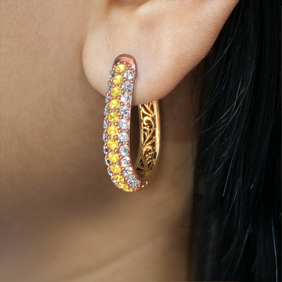 This set of orbs Danika 12.5 A hoop earrings are beautiful small hoop earrings to finish off your look. Our expert jewellers combine the latest techniques with ancient craftsmanship. They make your hoop earrings by hand in our own crafting studio. The yellow sapphire of your choosing are set in your hoop earrings with the utmost precision, so light reflects evenly from every angle. In the end you get stunning, unique hoop earrings that match your own style perfectly! Take these rose gold hoop earrings set with yellow sapphire 1.7 mm, for example. The best part of these orbs hoop earrings is that you can customize it to your own liking. Your style, your choice, your hoop earrings. On top of that, your classic rose gold hoop earrings will be made by hand with eco-friendly materials! Please feel free to easily customize the hoop earrings, using our online tool.The Danika 12.5 A made just for you, with great attention to detail and design.By using our modern techniques, we can design and customize the finest quality jewels with the utmost care for you. Our hoop earrings are always priced 30 percent lower than other jewellers. We make hoop earrings to order so we don't have to maintain a large stock. If you have a certain budget, we are more than happy to advice you accordingly.To make it easier for you, we offer a 30 day return policy. Check our terms and conditions.