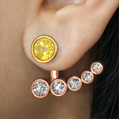 How would you describe your style? Are you looking for something slightly different? These contemporary special rose gold earrings are unique and created by our expert goldsmiths. These contemporary earrings are set with yellow sapphire. Each of the yellow sapphire is carefully selected, because we believe your earrings should be adorned with nothing but the most exquisite gemstones. Wouldn't you agree? The Wendy earrings are passionately made by one of our master goldsmiths.. Customized contemporary special earrings are the perfect gift! New exquisite designs are added daily by our team of passionate goldsmiths. And each design can be customized. Simply customize the precious metals and the colour of gemstones which will be used, for example. This makes your design of the contemporary Wendy earrings truly unique!Because we design and deliver our own earrings, we can offer you earrings at a price you won't find anywhere else. earrings are made to order, which helps prevent excess supplies, so we can make you a great price offer. We understand it feels risky, buying your earrings online, but we will gladly assist in the designing process, taking your budget into consideration. To make it easier for you, we offer a 30 day return policy. Check our terms and conditions.