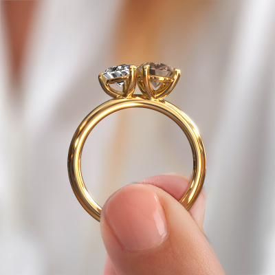 This 14 Carat gold ring is called Toi et Moi OVL-PER and is set with brown diamond. Do you keep up with the latest fashion trends? Do you want a unique engagement ring that matches your lifestyle? This charming engagement ring is an extraordinary ring which can be custom-made to fit your or her personal style. This fashionable gold engagement ring is set with brown diamond. Our brown diamonds are carefully selected for this specific ring in order to create the best effect. Our expert goldsmith will create your ring in our own artisan studio where the brown diamond will be set with great care. The ring will then be polished to perfection. Nothing but the best for the love of your life! This jewel is made just for you by our master goldsmiths in our own studio.By using our modern techniques, we can design and customize the finest quality jewels with the utmost care for you. Our engagement rings are always priced 30 percent lower than other jewellers. We make engagement rings to order so we don't have to maintain a large stock. If you have a certain budget, we are more than happy to advice you accordingly.Do you have a specific ring in mind? One you came across somewhere. Please feel free to tell us your wishes and we will turn your design into a unique engagement ring. You can follow the development of your ring design because we use 3D drawings. This gives you a realistic preview of your design. We will gladly send you a non-binding offer, based on a fair price/ quality ratio. It will amaze you.To make it easier for you, we offer a 30 day return policy. Check our terms and conditions.