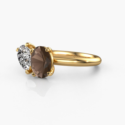 This 14 Carat gold ring is called Toi et Moi OVL-PER and is set with smokey quartz. Do you keep up with the latest fashion trends? Do you want a unique engagement ring that matches your lifestyle? This charming engagement ring is an extraordinary ring which can be custom-made to fit your or her personal style. This fashionable gold engagement ring is set with smokey quartz. Our smokey quartz are carefully selected for this specific ring in order to create the best effect. Our expert goldsmith will create your ring in our own artisan studio where the smokey quartz will be set with great care. The ring will then be polished to perfection. Nothing but the best for the love of your life! This jewel is made just for you by our master goldsmiths in our own studio.By using our modern techniques, we can design and customize the finest quality jewels with the utmost care for you. Our engagement rings are always priced 30 percent lower than other jewellers. We make engagement rings to order so we don't have to maintain a large stock. If you have a certain budget, we are more than happy to advice you accordingly.Do you have a specific ring in mind? One you came across somewhere. Please feel free to tell us your wishes and we will turn your design into a unique engagement ring. You can follow the development of your ring design because we use 3D drawings. This gives you a realistic preview of your design. We will gladly send you a non-binding offer, based on a fair price/ quality ratio. It will amaze you.To make it easier for you, we offer a 30 day return policy. Check our terms and conditions.