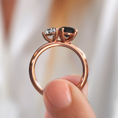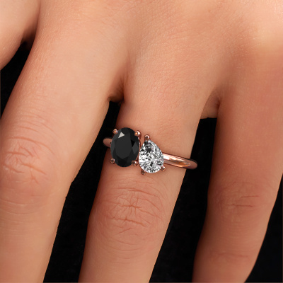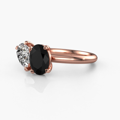 This 14 Carat rose gold ring is called Toi et Moi OVL-PER and is set with black diamond. Do you keep up with the latest fashion trends? Do you want a unique engagement ring that matches your lifestyle? This charming engagement ring is an extraordinary ring which can be custom-made to fit your or her personal style. This fashionable rose gold engagement ring is set with black diamond. Our black diamonds are carefully selected for this specific ring in order to create the best effect. Our expert goldsmith will create your ring in our own artisan studio where the black diamond will be set with great care. The ring will then be polished to perfection. Nothing but the best for the love of your life! This jewel is made just for you by our master goldsmiths in our own studio.By using our modern techniques, we can design and customize the finest quality jewels with the utmost care for you. Our engagement rings are always priced 30 percent lower than other jewellers. We make engagement rings to order so we don't have to maintain a large stock. If you have a certain budget, we are more than happy to advice you accordingly.Do you have a specific ring in mind? One you came across somewhere. Please feel free to tell us your wishes and we will turn your design into a unique engagement ring. You can follow the development of your ring design because we use 3D drawings. This gives you a realistic preview of your design. We will gladly send you a non-binding offer, based on a fair price/ quality ratio. It will amaze you.To make it easier for you, we offer a 30 day return policy. Check our terms and conditions.