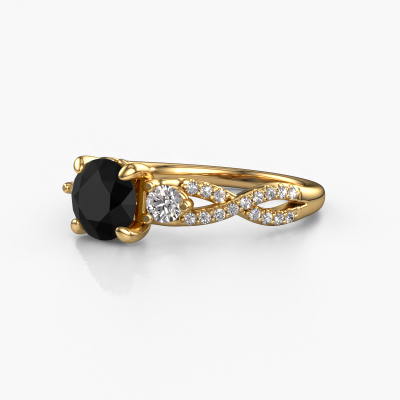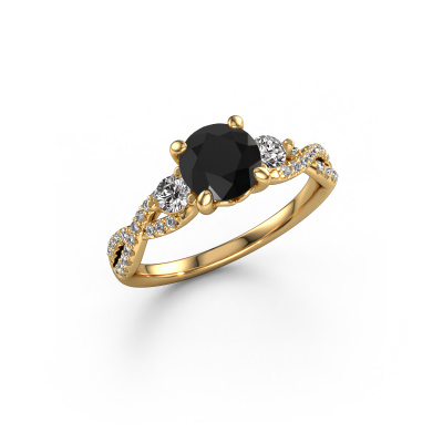 This 14 Carat gold ring is called Marilou RND and is set with 1.66 crt black diamond. This exclusive gold 3-stone engagement ring is a true work of art! The ornaments are crafted with a lot of patience and great passion. In order to create this ring with great precision, this craft requires a keen eye and skilful hand. A challenge which ignites a fire in our expert goldsmith. The exquisite black diamonds are set in a special way so they stand out even more. This gives the ring an even more glamorous appearance. The split band engagement ring is actually unique on its own because of the gemstones which we carefully select especially for this ring. On top of that you select the precious metals which will be used to create a unique ring for the most extraordinary woman in your life! This jewel is made just for you, with attention to detail and design.Are you on a budget? Please feel free to contact us, so we can go discuss your options. We offer our engagement rings at guaranteed best price, because we make them to order. You won't find such a price anywhere else!Have you found a specific engagement ring somewhere which you would like to give to your loved one? Please feel free to express your wishes to our jewel designers because we would be honoured to turn your design into a fantasy engagement ring. You can follow the development of your ring design because we use 3D drawings. This gives you a realistic preview of how your design will look. You can also preorder a dummy. A dummy is a plastic ring, which can be shaped according your ring design. You can try it on and check if its width and size are suitable for you. We will gladly send you a non-binding offer, based on a fair price/ quality ratio. It will amaze you, considering the quality of the ring and gemstones.To make it easier for you, we offer a 30 day return policy. Check our terms and conditions.