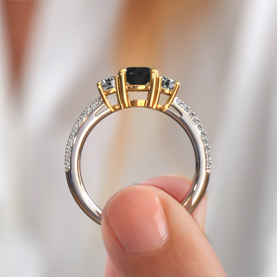 This 14 Carat white gold ring is called Marielle RND and is set with 1.63 crt black diamond. This exclusive white gold 3-stone engagement ring is a true work of art! The ornaments are crafted with a lot of patience and great passion. In order to create this ring with great precision, this craft requires a keen eye and skilful hand. A challenge which ignites a fire in our expert goldsmith. The exquisite black diamonds are set in a special way so they stand out even more. This gives the ring an even more glamorous appearance. The tasteful engagement ring is actually unique on its own because of the gemstones which we carefully select especially for this ring. On top of that you select the precious metals which will be used to create a unique ring for the most extraordinary woman in your life! This jewel is made with passion and love by one of our master goldsmiths.By using a combination of the latest modern techniques, combined with ancient crafting, we can make all our engagement rings in our own studio. Each jewel is made to order. This is advantageous because we can offer you a price you won't find anywhere else.Our designers and goldsmiths work together each day, creating new jewels. Perhaps you have found a nice exclusive engagement ring somewhere, which can be used to customize your unique ring. Please feel free to contact us. We will make you an offer, based on a fair price/ quality ratio, which will amaze you.To make it easier for you, we offer a 30 day return policy. Check our terms and conditions.