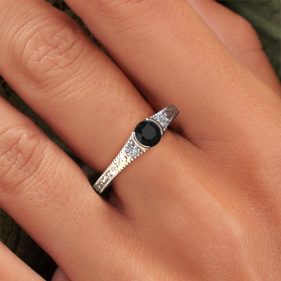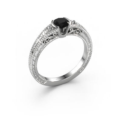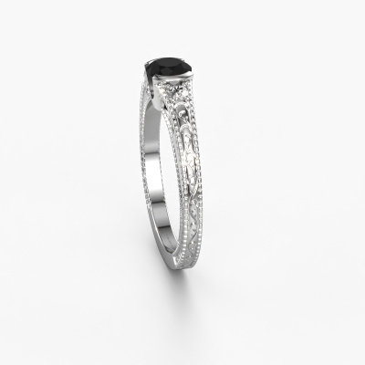 This 14 Carat white gold ring is called Anamaria and is set with 0.69 crt black diamond. An extraordinary white gold vintage ring. One that will surely make the love of your life shine like a diamond! That is what we hope to achieve. This vintage engagement ring is set with exquisite black diamond. Whichever gemstone you choose from our selection, is up to you. The gemstone is selected with great care because we believe your filigree engagement ring must be adorned with nothing but the most beautiful gemstone. Wouldn't you agree? Our expert goldsmith will design your ring in our own crafting studio, where the black diamond will be set with great precision. The ring will then be polished till it shines perfectly. Nothing but the best for the love of your life! This jewel is made just for you by our master goldsmiths in our own studio.Are you on a budget? Please feel free to contact us, so we can go discuss your options. We offer our engagement rings at guaranteed best price, because we make them to order. You won't find such a price anywhere else!Our team adds new designs to our online collection daily. Our designers and goldsmiths work together in creating the best design. We strive to offer a diverse collection of jewels. Perhaps you have a specific jewel design in mind. One you came across somewhere. Please contact us for a free consultation. We will make you an offer, based on a fair price/ quality ratio, that will baffle you.To make it easier for you, we offer a 30 day return policy. Check our terms and conditions.