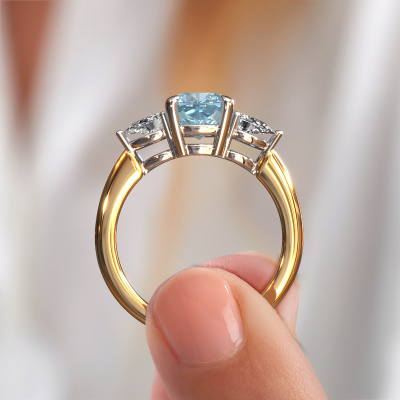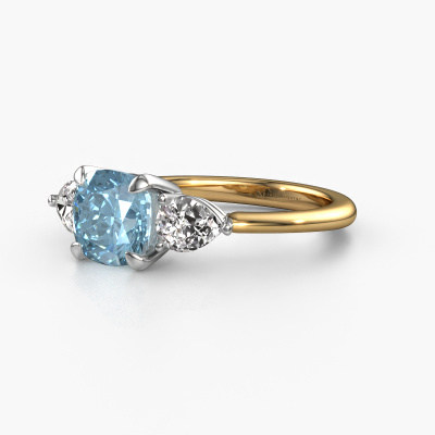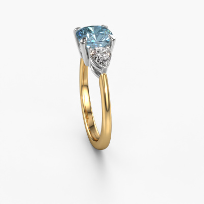 This 14 Carat gold ring is called Chanou CUS and is set with 7 mm blue lab grown diamond. This exclusive gold 3-stone engagement ring is a true work of art! The ornaments are crafted with a lot of patience and great passion. In order to create this ring with great precision, this craft requires a keen eye and skilful hand. A challenge which ignites a fire in our expert goldsmith. The exquisite blue lab grown diamonds are set in a special way so they stand out even more. This gives the ring an even more glamorous appearance. The pretty engagement ring is actually unique on its own because of the gemstones which we carefully select especially for this ring. On top of that you select the precious metals which will be used to create a unique ring for the most extraordinary woman in your life! This jewel is made to shine bright around your finger. Each jewel is hand made with love by our goldsmiths.After receiving your order, our goldsmiths will start the creative process of making your Chanou CUS engagement ring. We don't keep stock. This is advantageous because these costs will not be passed on to you. Therefore, we can offer jewellery at exceptionally low prices.Our designers and goldsmiths work together each day, creating new jewels. Perhaps you have found a nice exclusive engagement ring somewhere, which can be used to customize your unique ring. Please feel free to contact us. We will make you an offer, based on a fair price/ quality ratio, which will amaze you.To make it easier for you, we offer a 30 day return policy. Check our terms and conditions.