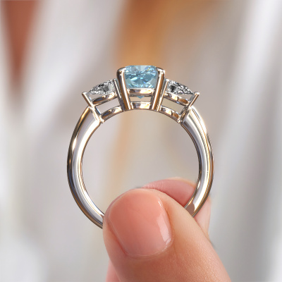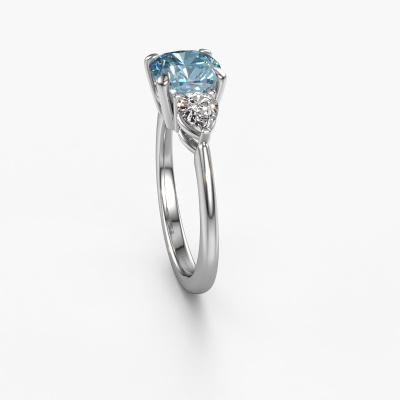 This 14 Carat white gold ring is called Chanou CUS and is set with 7 mm blue lab grown diamond. This exclusive white gold 3-stone engagement ring is a true work of art! The ornaments are crafted with a lot of patience and great passion. In order to create this ring with great precision, this craft requires a keen eye and skilful hand. A challenge which ignites a fire in our expert goldsmith. The exquisite blue lab grown diamonds are set in a special way so they stand out even more. This gives the ring an even more glamorous appearance. The pretty engagement ring is actually unique on its own because of the gemstones which we carefully select especially for this ring. On top of that you select the precious metals which will be used to create a unique ring for the most extraordinary woman in your life! This jewel is made to shine bright around your finger. Each jewel is hand made with love by our goldsmiths.After receiving your order, our goldsmiths will start the creative process of making your Chanou CUS engagement ring. We don't keep stock. This is advantageous because these costs will not be passed on to you. Therefore, we can offer jewellery at exceptionally low prices.Our designers and goldsmiths work together each day, creating new jewels. Perhaps you have found a nice exclusive engagement ring somewhere, which can be used to customize your unique ring. Please feel free to contact us. We will make you an offer, based on a fair price/ quality ratio, which will amaze you.To make it easier for you, we offer a 30 day return policy. Check our terms and conditions.