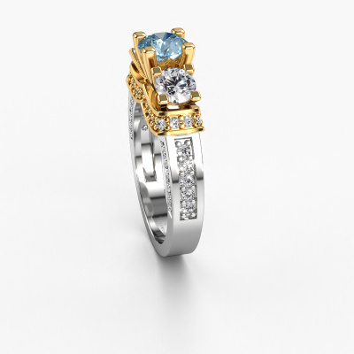 This 14 Carat white gold ring is called Phileine and is set with 5 mm blue lab grown diamond. This exclusive white gold 3-stone engagement ring is a true work of art! The ornaments are crafted with a lot of patience and great passion. In order to create this ring with great precision, this craft requires a keen eye and skilful hand. A challenge which ignites a fire in our expert goldsmith. The exquisite blue lab grown diamonds are set in a special way so they stand out even more. This gives the ring an even more glamorous appearance. The daring engagement ring is actually unique on its own because of the gemstones which we carefully select especially for this ring. On top of that you select the precious metals which will be used to create a unique ring for the most extraordinary woman in your life! This jewel is made with passion and love by one of our master goldsmiths.After receiving your order, our goldsmiths will passionately start the creative process of making your engagement ring in our own studio. Because we don't have a big stockpile, these costs will not be passed on to you. Our pricing is proof of that! We offer top quality jewels at lowest price, guaranteed.Different styles of new rings are made daily by our team. Perhaps you have found a 3-stone engagement ring somewhere. One you would like to give to your loved one. Please feel free to share your thoughts and design with our jewel designers. We would love to turn your design into a exclusive engagement ring. You can follow the development of your ring design because we use very detailed 3D drawings. On top of that, you can order a dummy of the design. A dummy is a plastic ring, which can be shaped according your ring design. You can try it on and check if the engagement ring is up to standard. We will gladly send you a non-binding offer, based on a fair price/ quality ratio. The offer will baffle you, considering the quality of the ring and gemstones.To make it easier for you, we offer a 30 day return policy. Check our terms and conditions.