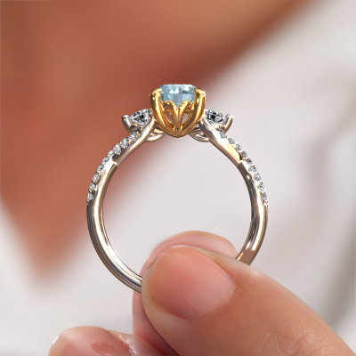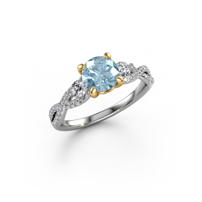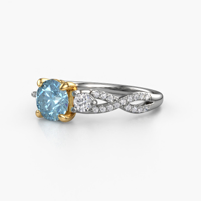 This 14 Carat white gold ring is called Marilou RND and is set with 6.5 mm blue lab grown diamond. This exclusive white gold 3-stone engagement ring is a true work of art! The ornaments are crafted with a lot of patience and great passion. In order to create this ring with great precision, this craft requires a keen eye and skilful hand. A challenge which ignites a fire in our expert goldsmith. The exquisite blue lab grown diamonds are set in a special way so they stand out even more. This gives the ring an even more glamorous appearance. The split band engagement ring is actually unique on its own because of the gemstones which we carefully select especially for this ring. On top of that you select the precious metals which will be used to create a unique ring for the most extraordinary woman in your life! This jewel is made just for you, with attention to detail and design.Are you on a budget? Please feel free to contact us, so we can go discuss your options. We offer our engagement rings at guaranteed best price, because we make them to order. You won't find such a price anywhere else!Have you found a specific engagement ring somewhere which you would like to give to your loved one? Please feel free to express your wishes to our jewel designers because we would be honoured to turn your design into a fantasy engagement ring. You can follow the development of your ring design because we use 3D drawings. This gives you a realistic preview of how your design will look. You can also preorder a dummy. A dummy is a plastic ring, which can be shaped according your ring design. You can try it on and check if its width and size are suitable for you. We will gladly send you a non-binding offer, based on a fair price/ quality ratio. It will amaze you, considering the quality of the ring and gemstones.To make it easier for you, we offer a 30 day return policy. Check our terms and conditions.