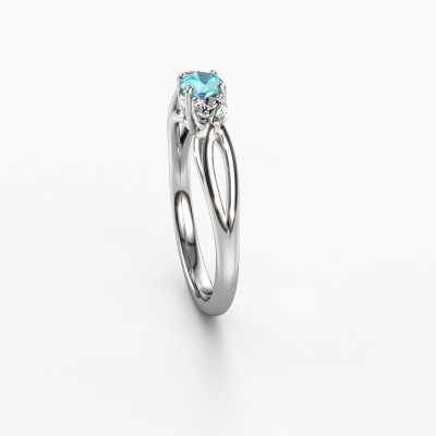 This platinum ring is called Amie RND and is set with 4.2 mm blue topaz. This exclusive platinum 3-stone engagement ring is a true work of art! The ornaments are crafted with a lot of patience and great passion. In order to create this ring with great precision, this craft requires a keen eye and skilful hand. A challenge which ignites a fire in our expert goldsmith. The exquisite blue topaz are set in a special way so they stand out even more. This gives the ring an even more glamorous appearance. The graceful engagement ring is actually unique on its own because of the gemstones which we carefully select especially for this ring. On top of that you select the precious metals which will be used to create a unique ring for the most extraordinary woman in your life! This jewel is made with passion and love by one of our master goldsmiths.Because we design and deliver our own rings, we can offer you a engagement ring at a price you won't find anywhere else. A ring is made to order, which helps prevent excess supplies, so we can make you a great price offer. We understand it feels risky, buying your engagement ring online, but we will gladly assist in the designing process, taking your budget into consideration.Our designers and goldsmiths work together each day, creating new jewels. Perhaps you have found a nice classic engagement ring somewhere, which can be used to customize your unique ring. Please feel free to contact us. We will make you an offer, based on a fair price/ quality ratio, which will amaze you.To make it easier for you, we offer a 30 day return policy. Check our terms and conditions.