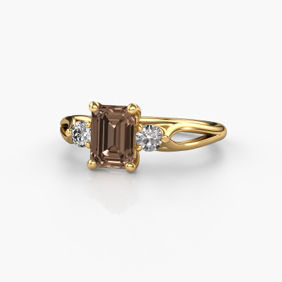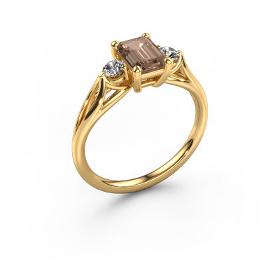 This 14 Carat gold ring is called Amie EME and is set with 1.350 crt brown diamond. This exclusive gold 3-stone engagement ring is a true work of art! The ornaments are crafted with a lot of patience and great passion. In order to create this ring with great precision, this craft requires a keen eye and skilful hand. A challenge which ignites a fire in our expert goldsmith. The exquisite brown diamonds are set in a special way so they stand out even more. This gives the ring an even more glamorous appearance. The tasteful engagement ring is actually unique on its own because of the gemstones which we carefully select especially for this ring. On top of that you select the precious metals which will be used to create a unique ring for the most extraordinary woman in your life! This jewel is made to shine bright around your finger. Each jewel is hand made with love by our goldsmiths.Are you on a budget? Please feel free to contact us, so we can go discuss your options. We offer our engagement rings at guaranteed best price, because we make them to order. You won't find such a price anywhere else!Our team adds new designs to our online collection daily. Our designers and goldsmiths work together in creating the best design. We strive to offer a diverse collection of jewels. Perhaps you have a specific jewel design in mind. One you came across somewhere. Please contact us for a free consultation. We will make you an offer, based on a fair price/ quality ratio, that will baffle you.To make it easier for you, we offer a 30 day return policy. Check our terms and conditions.