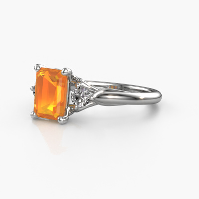 This platinum ring is called Laurian EME and is set with 8x6 mm citrin. This exclusive platinum 3-stone engagement ring is a true work of art! The ornaments are crafted with a lot of patience and great passion. In order to create this ring with great precision, this craft requires a keen eye and skilful hand. A challenge which ignites a fire in our expert goldsmith. The exquisite citrin are set in a special way so they stand out even more. This gives the ring an even more glamorous appearance. The special engagement ring is actually unique on its own because of the gemstones which we carefully select especially for this ring. On top of that you select the precious metals which will be used to create a unique ring for the most extraordinary woman in your life! This jewel is unique in every way! Simply customize to your liking,By using a combination of the latest modern techniques, combined with ancient crafting, we can make all our engagement rings in our own studio. Each jewel is made to order. This is advantageous because we can offer you a price you won't find anywhere else.Our team adds new designs to our online collection daily. Our designers and goldsmiths work together in creating the best design. We strive to offer a diverse collection of jewels. Perhaps you have a specific jewel design in mind. One you came across somewhere. Please contact us for a free consultation. We will make you an offer, based on a fair price/ quality ratio, that will baffle you.To make it easier for you, we offer a 30 day return policy. Check our terms and conditions.