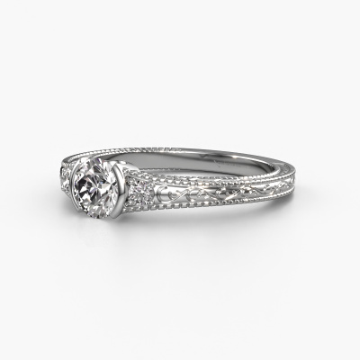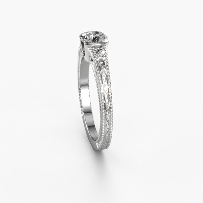 This 14 Carat white gold ring is called Anamaria and is set with 0.69 crt diamond. An extraordinary white gold vintage ring. One that will surely make the love of your life shine like a diamond! That is what we hope to achieve. This vintage engagement ring is set with exquisite diamond. Whichever gemstone you choose from our selection, is up to you. The gemstone is selected with great care because we believe your filigree engagement ring must be adorned with nothing but the most beautiful gemstone. Wouldn't you agree? Our expert goldsmith will design your ring in our own crafting studio, where the diamond will be set with great precision. The ring will then be polished till it shines perfectly. Nothing but the best for the love of your life! This jewel is made just for you by our master goldsmiths in our own studio.Are you on a budget? Please feel free to contact us, so we can go discuss your options. We offer our engagement rings at guaranteed best price, because we make them to order. You won't find such a price anywhere else!Our team adds new designs to our online collection daily. Our designers and goldsmiths work together in creating the best design. We strive to offer a diverse collection of jewels. Perhaps you have a specific jewel design in mind. One you came across somewhere. Please contact us for a free consultation. We will make you an offer, based on a fair price/ quality ratio, that will baffle you.To make it easier for you, we offer a 30 day return policy. Check our terms and conditions.