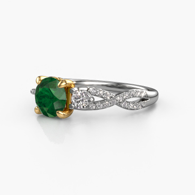 This 14 Carat white gold ring is called Marilou RND and is set with 6.5 mm emerald. This exclusive white gold 3-stone engagement ring is a true work of art! The ornaments are crafted with a lot of patience and great passion. In order to create this ring with great precision, this craft requires a keen eye and skilful hand. A challenge which ignites a fire in our expert goldsmith. The exquisite emerald are set in a special way so they stand out even more. This gives the ring an even more glamorous appearance. The split band engagement ring is actually unique on its own because of the gemstones which we carefully select especially for this ring. On top of that you select the precious metals which will be used to create a unique ring for the most extraordinary woman in your life! This jewel is made just for you, with attention to detail and design.Are you on a budget? Please feel free to contact us, so we can go discuss your options. We offer our engagement rings at guaranteed best price, because we make them to order. You won't find such a price anywhere else!Have you found a specific engagement ring somewhere which you would like to give to your loved one? Please feel free to express your wishes to our jewel designers because we would be honoured to turn your design into a fantasy engagement ring. You can follow the development of your ring design because we use 3D drawings. This gives you a realistic preview of how your design will look. You can also preorder a dummy. A dummy is a plastic ring, which can be shaped according your ring design. You can try it on and check if its width and size are suitable for you. We will gladly send you a non-binding offer, based on a fair price/ quality ratio. It will amaze you, considering the quality of the ring and gemstones.To make it easier for you, we offer a 30 day return policy. Check our terms and conditions.