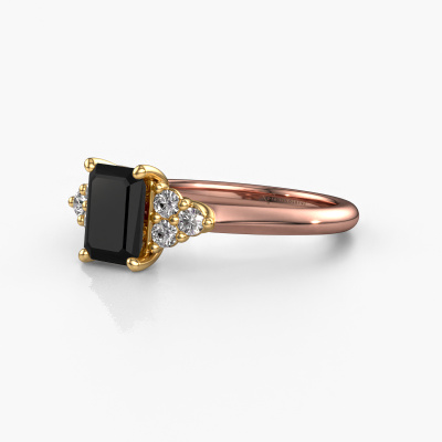 This 14 Carat rose gold ring is called Felipa EME and is set with 1.573 crt black diamond. For you, there is only one person in your life who stands out in a crowd. Only one that makes your heart skip a beat. A true gem! She, above all others, deserves a special gift. A unique customized jewel made in her honour. We believe this ring is perfect for your special moment. Each detail of this exclusive rose gold 3-stone engagement ring is selected by hand, crafted and polished by our expert goldsmith in our own artisan studio. We strive to achieve the perfect design and composition of the ring, so it enhances the unique features of our black diamonds, and lets them shine even brighter. It takes a lot of precision to make but in the end it pays off because of the sheer beauty of the ring. And that is our main goal. It's what gets us excited. The great thing about our online tool is, that you can design your own jewellery into a unique, personalized piece. This unique tasteful engagement ring is created with the precious metal combination of rose gold and gold. But of course you are completely free to select other colours. Each piece of jewellery is made to shine bright around your finger. Each jewel is hand made with love by our goldsmiths.By using a combination of the latest modern techniques, combined with ancient crafting, we can make all our engagement rings in our own studio. Each jewel is made to order. This is advantageous because we can offer you a price you won't find anywhere else.Our team adds new designs to our online collection daily. Our designers and goldsmiths work together in creating the best design. We strive to offer a diverse collection of jewels. Perhaps you have a specific jewel design in mind. One you came across somewhere. Please contact us for a free consultation. We will make you an offer, based on a fair price/ quality ratio, that will baffle you.To make it easier for you, we offer a 30 day return policy. Check our terms and conditions.