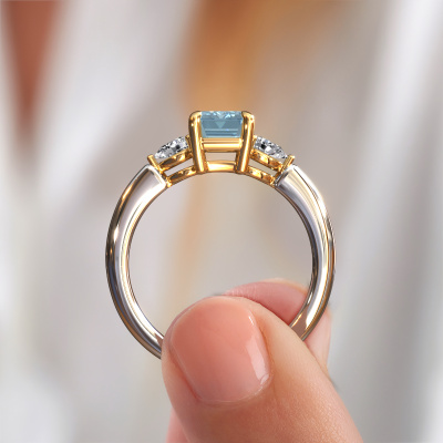 This 14 Carat white gold ring is called Chanou EME and is set with 7.5x5.5 mm blue lab grown diamond. For you, there is only one person in your life who stands out in a crowd. Only one that makes your heart skip a beat. A true gem! She, above all others, deserves a special gift. A unique customized jewel made in her honour. We believe this ring is perfect for your special moment. Each detail of this exclusive white gold 3-stone engagement ring is selected by hand, crafted and polished by our expert goldsmith in our own artisan studio. We strive to achieve the perfect design and composition of the ring, so it enhances the unique features of our blue lab grown diamonds, and lets them shine even brighter. It takes a lot of precision to make but in the end it pays off because of the sheer beauty of the ring. And that is our main goal. It's what gets us excited. The great thing about our online tool is, that you can design your own jewellery into a unique, personalized piece. This unique tasteful engagement ring is created with the precious metal combination of white gold and gold. But of course you are completely free to select other colours. Each piece of jewellery is made just for you by our master goldsmiths in our own studio.By using a combination of the latest modern techniques, combined with ancient crafting, we can make all our engagement rings in our own studio. Each jewel is made to order. This is advantageous because we can offer you a price you won't find anywhere else.Our designers and goldsmiths work together each day, creating new jewels. Perhaps you have found a nice unique engagement ring somewhere, which can be used to customize your unique ring. Please feel free to contact us. We will make you an offer, based on a fair price/ quality ratio, which will amaze you.To make it easier for you, we offer a 30 day return policy. Check our terms and conditions.