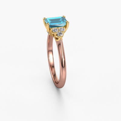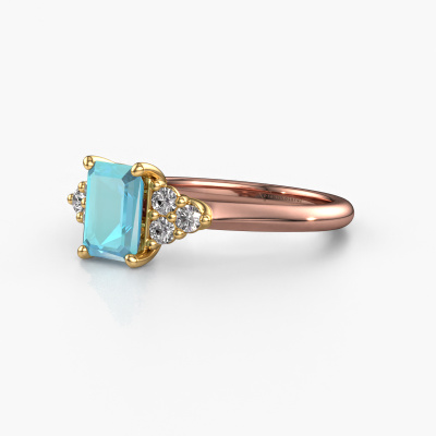 This 14 Carat rose gold ring is called Felipa EME and is set with 7x5 mm blue topaz. For you, there is only one person in your life who stands out in a crowd. Only one that makes your heart skip a beat. A true gem! She, above all others, deserves a special gift. A unique customized jewel made in her honour. We believe this ring is perfect for your special moment. Each detail of this exclusive rose gold 3-stone engagement ring is selected by hand, crafted and polished by our expert goldsmith in our own artisan studio. We strive to achieve the perfect design and composition of the ring, so it enhances the unique features of our blue topaz, and lets them shine even brighter. It takes a lot of precision to make but in the end it pays off because of the sheer beauty of the ring. And that is our main goal. It's what gets us excited. The great thing about our online tool is, that you can design your own jewellery into a unique, personalized piece. This unique tasteful engagement ring is created with the precious metal combination of rose gold and gold. But of course you are completely free to select other colours. Each piece of jewellery is made to shine bright around your finger. Each jewel is hand made with love by our goldsmiths.By using a combination of the latest modern techniques, combined with ancient crafting, we can make all our engagement rings in our own studio. Each jewel is made to order. This is advantageous because we can offer you a price you won't find anywhere else.Our team adds new designs to our online collection daily. Our designers and goldsmiths work together in creating the best design. We strive to offer a diverse collection of jewels. Perhaps you have a specific jewel design in mind. One you came across somewhere. Please contact us for a free consultation. We will make you an offer, based on a fair price/ quality ratio, that will baffle you.To make it easier for you, we offer a 30 day return policy. Check our terms and conditions.