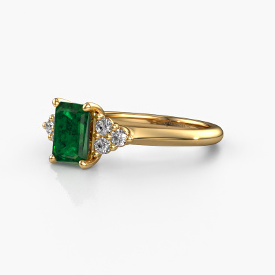This 14 Carat gold ring is called Felipa EME and is set with 7x5 mm emerald. For you, there is only one person in your life who stands out in a crowd. Only one that makes your heart skip a beat. A true gem! She, above all others, deserves a special gift. A unique customized jewel made in her honour. We believe this ring is perfect for your special moment. Each detail of this exclusive gold 3-stone engagement ring is selected by hand, crafted and polished by our expert goldsmith in our own artisan studio. We strive to achieve the perfect design and composition of the ring, so it enhances the unique features of our emerald, and lets them shine even brighter. It takes a lot of precision to make but in the end it pays off because of the sheer beauty of the ring. And that is our main goal. It's what gets us excited. The great thing about our online tool is, that you can design your own jewellery into a unique, personalized piece. This unique tasteful engagement ring is created with the precious metal combination of gold and gold. But of course you are completely free to select other colours. Each piece of jewellery is made to shine bright around your finger. Each jewel is hand made with love by our goldsmiths.By using a combination of the latest modern techniques, combined with ancient crafting, we can make all our engagement rings in our own studio. Each jewel is made to order. This is advantageous because we can offer you a price you won't find anywhere else.Our team adds new designs to our online collection daily. Our designers and goldsmiths work together in creating the best design. We strive to offer a diverse collection of jewels. Perhaps you have a specific jewel design in mind. One you came across somewhere. Please contact us for a free consultation. We will make you an offer, based on a fair price/ quality ratio, that will baffle you.To make it easier for you, we offer a 30 day return policy. Check our terms and conditions.
