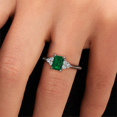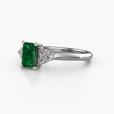 This platinum ring is called Felipa EME and is set with 7x5 mm emerald. For you, there is only one person in your life who stands out in a crowd. Only one that makes your heart skip a beat. A true gem! She, above all others, deserves a special gift. A unique customized jewel made in her honour. We believe this ring is perfect for your special moment. Each detail of this exclusive platinum 3-stone engagement ring is selected by hand, crafted and polished by our expert goldsmith in our own artisan studio. We strive to achieve the perfect design and composition of the ring, so it enhances the unique features of our emerald, and lets them shine even brighter. It takes a lot of precision to make but in the end it pays off because of the sheer beauty of the ring. And that is our main goal. It's what gets us excited. The great thing about our online tool is, that you can design your own jewellery into a unique, personalized piece. This unique tasteful engagement ring is created with the precious metal combination of platinum and platinum. But of course you are completely free to select other colours. Each piece of jewellery is made to shine bright around your finger. Each jewel is hand made with love by our goldsmiths.By using a combination of the latest modern techniques, combined with ancient crafting, we can make all our engagement rings in our own studio. Each jewel is made to order. This is advantageous because we can offer you a price you won't find anywhere else.Our team adds new designs to our online collection daily. Our designers and goldsmiths work together in creating the best design. We strive to offer a diverse collection of jewels. Perhaps you have a specific jewel design in mind. One you came across somewhere. Please contact us for a free consultation. We will make you an offer, based on a fair price/ quality ratio, that will baffle you.To make it easier for you, we offer a 30 day return policy. Check our terms and conditions.