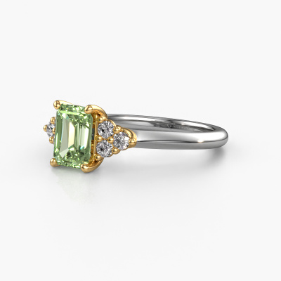 This 14 Carat white gold ring is called Felipa EME and is set with 7x5 mm green lab grown diamond. For you, there is only one person in your life who stands out in a crowd. Only one that makes your heart skip a beat. A true gem! She, above all others, deserves a special gift. A unique customized jewel made in her honour. We believe this ring is perfect for your special moment. Each detail of this exclusive white gold 3-stone engagement ring is selected by hand, crafted and polished by our expert goldsmith in our own artisan studio. We strive to achieve the perfect design and composition of the ring, so it enhances the unique features of our green lab grown diamonds, and lets them shine even brighter. It takes a lot of precision to make but in the end it pays off because of the sheer beauty of the ring. And that is our main goal. It's what gets us excited. The great thing about our online tool is, that you can design your own jewellery into a unique, personalized piece. This unique tasteful engagement ring is created with the precious metal combination of white gold and gold. But of course you are completely free to select other colours. Each piece of jewellery is made to shine bright around your finger. Each jewel is hand made with love by our goldsmiths.By using a combination of the latest modern techniques, combined with ancient crafting, we can make all our engagement rings in our own studio. Each jewel is made to order. This is advantageous because we can offer you a price you won't find anywhere else.Our team adds new designs to our online collection daily. Our designers and goldsmiths work together in creating the best design. We strive to offer a diverse collection of jewels. Perhaps you have a specific jewel design in mind. One you came across somewhere. Please contact us for a free consultation. We will make you an offer, based on a fair price/ quality ratio, that will baffle you.To make it easier for you, we offer a 30 day return policy. Check our terms and conditions.