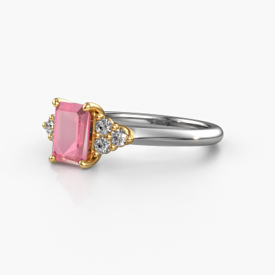 This 14 Carat white gold ring is called Felipa EME and is set with 7x5 mm tourmaline pink. For you, there is only one person in your life who stands out in a crowd. Only one that makes your heart skip a beat. A true gem! She, above all others, deserves a special gift. A unique customized jewel made in her honour. We believe this ring is perfect for your special moment. Each detail of this exclusive white gold 3-stone engagement ring is selected by hand, crafted and polished by our expert goldsmith in our own artisan studio. We strive to achieve the perfect design and composition of the ring, so it enhances the unique features of our tourmaline pink, and lets them shine even brighter. It takes a lot of precision to make but in the end it pays off because of the sheer beauty of the ring. And that is our main goal. It's what gets us excited. The great thing about our online tool is, that you can design your own jewellery into a unique, personalized piece. This unique tasteful engagement ring is created with the precious metal combination of white gold and gold. But of course you are completely free to select other colours. Each piece of jewellery is made to shine bright around your finger. Each jewel is hand made with love by our goldsmiths.By using a combination of the latest modern techniques, combined with ancient crafting, we can make all our engagement rings in our own studio. Each jewel is made to order. This is advantageous because we can offer you a price you won't find anywhere else.Our team adds new designs to our online collection daily. Our designers and goldsmiths work together in creating the best design. We strive to offer a diverse collection of jewels. Perhaps you have a specific jewel design in mind. One you came across somewhere. Please contact us for a free consultation. We will make you an offer, based on a fair price/ quality ratio, that will baffle you.To make it easier for you, we offer a 30 day return policy. Check our terms and conditions.