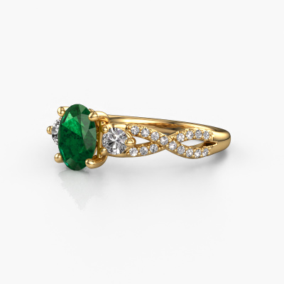 This 14 Carat gold ring is called Marilou OVL and is set with emerald. Do you keep up with the latest fashion trends? Do you want a unique engagement ring that matches your lifestyle? This tasteful engagement ring is an extraordinary ring which can be custom-made to fit your or her personal style. This contemporary gold engagement ring is set with emerald. Our emerald are carefully selected for this specific ring in order to create the best effect. Our expert goldsmith will create your ring in our own artisan studio where the emerald will be set with great care. The ring will then be polished to perfection. Nothing but the best for the love of your life! This jewel is made just for you by our master goldsmiths in our own studio.By using our modern techniques, we can design and customize the finest quality jewels with the utmost care for you. Our engagement rings are always priced 30 percent lower than other jewellers. We make engagement rings to order so we don't have to maintain a large stock. If you have a certain budget, we are more than happy to advice you accordingly.Do you have a specific ring in mind? One you came across somewhere. Please feel free to tell us your wishes and we will turn your design into a unique engagement ring. You can follow the development of your ring design because we use 3D drawings. This gives you a realistic preview of your design. We will gladly send you a non-binding offer, based on a fair price/ quality ratio. It will amaze you.To make it easier for you, we offer a 30 day return policy. Check our terms and conditions.