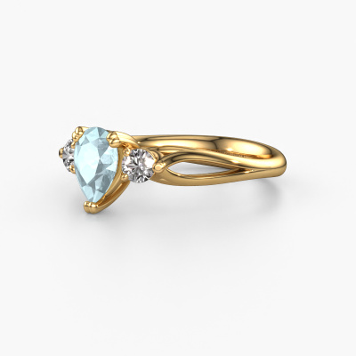 This 14 Carat gold ring is called Amie per and is set with 7x5 mm aquamarine. For you, there is only one person in your life who stands out in a crowd. Only one that makes your heart skip a beat. A true gem! She, above all others, deserves a special gift. A unique customized jewel made in her honour. We believe this ring is perfect for your special moment. Each detail of this exclusive gold 3-stone engagement ring is selected by hand, crafted and polished by our expert goldsmith in our own artisan studio. We strive to achieve the perfect design and composition of the ring, so it enhances the unique features of our aquamarine, and lets them shine even brighter. It takes a lot of precision to make but in the end it pays off because of the sheer beauty of the ring. And that is our main goal. It's what gets us excited. The great thing about our online tool is, that you can design your own jewellery into a unique, personalized piece. This unique special engagement ring is created with the precious metal combination of gold and gold. But of course you are completely free to select other colours. Each piece of jewellery is made by a team of passionate goldsmiths and jewel designers. This will make your crown jewel truly eye-catching.By using a combination of the latest modern techniques, combined with ancient crafting, we can make all our engagement rings in our own studio. Each jewel is made to order. This is advantageous because we can offer you a price you won't find anywhere else.Do you have a specific ring in mind? One you came across somewhere. Please feel free to tell us your wishes and we will turn your design into a unique engagement ring. You can follow the development of your ring design because we use 3D drawings. This gives you a realistic preview of your design. We will gladly send you a non-binding offer, based on a fair price/ quality ratio. It will amaze you.To make it easier for you, we offer a 30 day return policy. Check our terms and conditions.