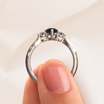 This platinum ring is called Lieselot PER and is set with 1.19 crt black diamond. For you, there is only one person in your life who stands out in a crowd. Only one that makes your heart skip a beat. A true gem! She, above all others, deserves a special gift. A unique customized jewel made in her honour. We believe this ring is perfect for your special moment. Each detail of this exclusive platinum 3-stone engagement ring is selected by hand, crafted and polished by our expert goldsmith in our own artisan studio. We strive to achieve the perfect design and composition of the ring, so it enhances the unique features of our black diamonds, and lets them shine even brighter. It takes a lot of precision to make but in the end it pays off because of the sheer beauty of the ring. And that is our main goal. It's what gets us excited. The great thing about our online tool is, that you can design your own jewellery into a unique, personalized piece. This unique special engagement ring is created with the precious metal combination of platinum and platinum. But of course you are completely free to select other colours. Each piece of jewellery is made with passion and love by one of our master goldsmiths.Are you on a budget? Please feel free to contact us, so we can go discuss your options. We offer our engagement rings at guaranteed best price, because we make them to order. You won't find such a price anywhere else!Different styles of new rings are made daily by our team. Perhaps you have found a 3-stone engagement ring somewhere. One you would like to give to your loved one. Please feel free to share your thoughts and design with our jewel designers. We would love to turn your design into a fashionable engagement ring. You can follow the development of your ring design because we use very detailed 3D drawings. On top of that, you can order a dummy of the design. A dummy is a plastic ring, which can be shaped according your ring design. You can try it on and check if the engagement ring is up to standard. We will gladly send you a non-binding offer, based on a fair price/ quality ratio. The offer will baffle you, considering the quality of the ring and gemstones.To make it easier for you, we offer a 30 day return policy. Check our terms and conditions.