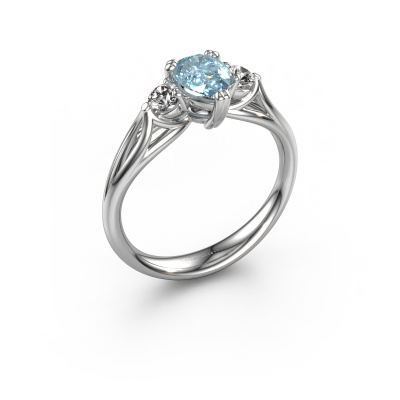 This platinum ring is called Amie per and is set with 7x5 mm blue lab grown diamond. For you, there is only one person in your life who stands out in a crowd. Only one that makes your heart skip a beat. A true gem! She, above all others, deserves a special gift. A unique customized jewel made in her honour. We believe this ring is perfect for your special moment. Each detail of this exclusive platinum 3-stone engagement ring is selected by hand, crafted and polished by our expert goldsmith in our own artisan studio. We strive to achieve the perfect design and composition of the ring, so it enhances the unique features of our blue lab grown diamonds, and lets them shine even brighter. It takes a lot of precision to make but in the end it pays off because of the sheer beauty of the ring. And that is our main goal. It's what gets us excited. The great thing about our online tool is, that you can design your own jewellery into a unique, personalized piece. This unique special engagement ring is created with the precious metal combination of platinum and platinum. But of course you are completely free to select other colours. Each piece of jewellery is made by a team of passionate goldsmiths and jewel designers. This will make your crown jewel truly eye-catching.By using a combination of the latest modern techniques, combined with ancient crafting, we can make all our engagement rings in our own studio. Each jewel is made to order. This is advantageous because we can offer you a price you won't find anywhere else.Do you have a specific ring in mind? One you came across somewhere. Please feel free to tell us your wishes and we will turn your design into a unique engagement ring. You can follow the development of your ring design because we use 3D drawings. This gives you a realistic preview of your design. We will gladly send you a non-binding offer, based on a fair price/ quality ratio. It will amaze you.To make it easier for you, we offer a 30 day return policy. Check our terms and conditions.