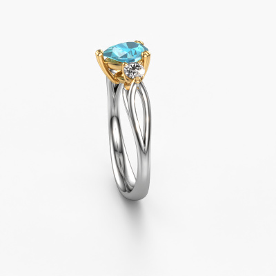 This 14 Carat white gold ring is called Amie per and is set with 7x5 mm blue topaz. For you, there is only one person in your life who stands out in a crowd. Only one that makes your heart skip a beat. A true gem! She, above all others, deserves a special gift. A unique customized jewel made in her honour. We believe this ring is perfect for your special moment. Each detail of this exclusive white gold 3-stone engagement ring is selected by hand, crafted and polished by our expert goldsmith in our own artisan studio. We strive to achieve the perfect design and composition of the ring, so it enhances the unique features of our blue topaz, and lets them shine even brighter. It takes a lot of precision to make but in the end it pays off because of the sheer beauty of the ring. And that is our main goal. It's what gets us excited. The great thing about our online tool is, that you can design your own jewellery into a unique, personalized piece. This unique special engagement ring is created with the precious metal combination of white gold and gold. But of course you are completely free to select other colours. Each piece of jewellery is made by a team of passionate goldsmiths and jewel designers. This will make your crown jewel truly eye-catching.By using a combination of the latest modern techniques, combined with ancient crafting, we can make all our engagement rings in our own studio. Each jewel is made to order. This is advantageous because we can offer you a price you won't find anywhere else.Do you have a specific ring in mind? One you came across somewhere. Please feel free to tell us your wishes and we will turn your design into a unique engagement ring. You can follow the development of your ring design because we use 3D drawings. This gives you a realistic preview of your design. We will gladly send you a non-binding offer, based on a fair price/ quality ratio. It will amaze you.To make it easier for you, we offer a 30 day return policy. Check our terms and conditions.