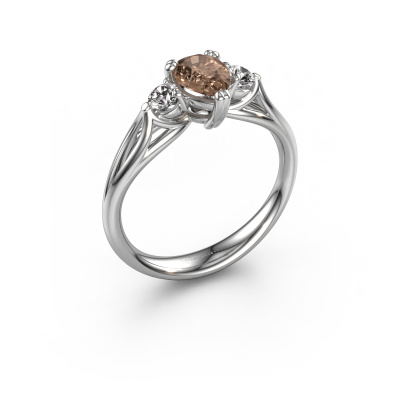 This platinum ring is called Amie per and is set with 0.85 crt brown diamond. For you, there is only one person in your life who stands out in a crowd. Only one that makes your heart skip a beat. A true gem! She, above all others, deserves a special gift. A unique customized jewel made in her honour. We believe this ring is perfect for your special moment. Each detail of this exclusive platinum 3-stone engagement ring is selected by hand, crafted and polished by our expert goldsmith in our own artisan studio. We strive to achieve the perfect design and composition of the ring, so it enhances the unique features of our brown diamonds, and lets them shine even brighter. It takes a lot of precision to make but in the end it pays off because of the sheer beauty of the ring. And that is our main goal. It's what gets us excited. The great thing about our online tool is, that you can design your own jewellery into a unique, personalized piece. This unique special engagement ring is created with the precious metal combination of platinum and platinum. But of course you are completely free to select other colours. Each piece of jewellery is made by a team of passionate goldsmiths and jewel designers. This will make your crown jewel truly eye-catching.By using a combination of the latest modern techniques, combined with ancient crafting, we can make all our engagement rings in our own studio. Each jewel is made to order. This is advantageous because we can offer you a price you won't find anywhere else.Do you have a specific ring in mind? One you came across somewhere. Please feel free to tell us your wishes and we will turn your design into a unique engagement ring. You can follow the development of your ring design because we use 3D drawings. This gives you a realistic preview of your design. We will gladly send you a non-binding offer, based on a fair price/ quality ratio. It will amaze you.To make it easier for you, we offer a 30 day return policy. Check our terms and conditions.