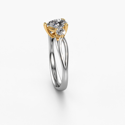 This 14 Carat white gold ring is called Amie per and is set with 7x5 mm custom diamond. For you, there is only one person in your life who stands out in a crowd. Only one that makes your heart skip a beat. A true gem! She, above all others, deserves a special gift. A unique customized jewel made in her honour. We believe this ring is perfect for your special moment. Each detail of this exclusive white gold 3-stone engagement ring is selected by hand, crafted and polished by our expert goldsmith in our own artisan studio. We strive to achieve the perfect design and composition of the ring, so it enhances the unique features of our custom diamonds, and lets them shine even brighter. It takes a lot of precision to make but in the end it pays off because of the sheer beauty of the ring. And that is our main goal. It's what gets us excited. The great thing about our online tool is, that you can design your own jewellery into a unique, personalized piece. This unique special engagement ring is created with the precious metal combination of white gold and gold. But of course you are completely free to select other colours. Each piece of jewellery is made by a team of passionate goldsmiths and jewel designers. This will make your crown jewel truly eye-catching.By using a combination of the latest modern techniques, combined with ancient crafting, we can make all our engagement rings in our own studio. Each jewel is made to order. This is advantageous because we can offer you a price you won't find anywhere else.Do you have a specific ring in mind? One you came across somewhere. Please feel free to tell us your wishes and we will turn your design into a unique engagement ring. You can follow the development of your ring design because we use 3D drawings. This gives you a realistic preview of your design. We will gladly send you a non-binding offer, based on a fair price/ quality ratio. It will amaze you.To make it easier for you, we offer a 30 day return policy. Check our terms and conditions.