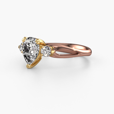 This 14 Carat rose gold ring is called Amie per and is set with 1.20 crt diamond. For you, there is only one person in your life who stands out in a crowd. Only one that makes your heart skip a beat. A true gem! She, above all others, deserves a special gift. A unique customized jewel made in her honour. We believe this ring is perfect for your special moment. Each detail of this exclusive rose gold 3-stone engagement ring is selected by hand, crafted and polished by our expert goldsmith in our own artisan studio. We strive to achieve the perfect design and composition of the ring, so it enhances the unique features of our diamonds, and lets them shine even brighter. It takes a lot of precision to make but in the end it pays off because of the sheer beauty of the ring. And that is our main goal. It's what gets us excited. The great thing about our online tool is, that you can design your own jewellery into a unique, personalized piece. This unique special engagement ring is created with the precious metal combination of rose gold and gold. But of course you are completely free to select other colours. Each piece of jewellery is made by a team of passionate goldsmiths and jewel designers. This will make your crown jewel truly eye-catching.By using a combination of the latest modern techniques, combined with ancient crafting, we can make all our engagement rings in our own studio. Each jewel is made to order. This is advantageous because we can offer you a price you won't find anywhere else.Do you have a specific ring in mind? One you came across somewhere. Please feel free to tell us your wishes and we will turn your design into a unique engagement ring. You can follow the development of your ring design because we use 3D drawings. This gives you a realistic preview of your design. We will gladly send you a non-binding offer, based on a fair price/ quality ratio. It will amaze you.To make it easier for you, we offer a 30 day return policy. Check our terms and conditions.