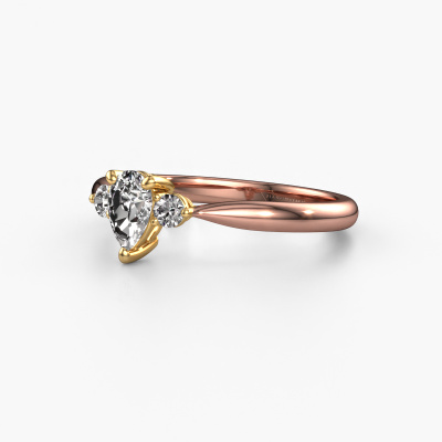This 14 Carat rose gold ring is called Lieselot PER and is set with 0.56 crt diamond. For you, there is only one person in your life who stands out in a crowd. Only one that makes your heart skip a beat. A true gem! She, above all others, deserves a special gift. A unique customized jewel made in her honour. We believe this ring is perfect for your special moment. Each detail of this exclusive rose gold 3-stone engagement ring is selected by hand, crafted and polished by our expert goldsmith in our own artisan studio. We strive to achieve the perfect design and composition of the ring, so it enhances the unique features of our diamonds, and lets them shine even brighter. It takes a lot of precision to make but in the end it pays off because of the sheer beauty of the ring. And that is our main goal. It's what gets us excited. The great thing about our online tool is, that you can design your own jewellery into a unique, personalized piece. This unique special engagement ring is created with the precious metal combination of rose gold and gold. But of course you are completely free to select other colours. Each piece of jewellery is made with passion and love by one of our master goldsmiths.Are you on a budget? Please feel free to contact us, so we can go discuss your options. We offer our engagement rings at guaranteed best price, because we make them to order. You won't find such a price anywhere else!Different styles of new rings are made daily by our team. Perhaps you have found a 3-stone engagement ring somewhere. One you would like to give to your loved one. Please feel free to share your thoughts and design with our jewel designers. We would love to turn your design into a fashionable engagement ring. You can follow the development of your ring design because we use very detailed 3D drawings. On top of that, you can order a dummy of the design. A dummy is a plastic ring, which can be shaped according your ring design. You can try it on and check if the engagement ring is up to standard. We will gladly send you a non-binding offer, based on a fair price/ quality ratio. The offer will baffle you, considering the quality of the ring and gemstones.To make it easier for you, we offer a 30 day return policy. Check our terms and conditions.