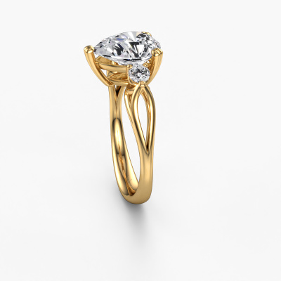 This 14 Carat gold ring is called Amie per and is set with 2.30 crt lab grown diamond. For you, there is only one person in your life who stands out in a crowd. Only one that makes your heart skip a beat. A true gem! She, above all others, deserves a special gift. A unique customized jewel made in her honour. We believe this ring is perfect for your special moment. Each detail of this exclusive gold 3-stone engagement ring is selected by hand, crafted and polished by our expert goldsmith in our own artisan studio. We strive to achieve the perfect design and composition of the ring, so it enhances the unique features of our lab-grown diamonds, and lets them shine even brighter. It takes a lot of precision to make but in the end it pays off because of the sheer beauty of the ring. And that is our main goal. It's what gets us excited. The great thing about our online tool is, that you can design your own jewellery into a unique, personalized piece. This unique special engagement ring is created with the precious metal combination of gold and gold. But of course you are completely free to select other colours. Each piece of jewellery is made by a team of passionate goldsmiths and jewel designers. This will make your crown jewel truly eye-catching.By using a combination of the latest modern techniques, combined with ancient crafting, we can make all our engagement rings in our own studio. Each jewel is made to order. This is advantageous because we can offer you a price you won't find anywhere else.Do you have a specific ring in mind? One you came across somewhere. Please feel free to tell us your wishes and we will turn your design into a unique engagement ring. You can follow the development of your ring design because we use 3D drawings. This gives you a realistic preview of your design. We will gladly send you a non-binding offer, based on a fair price/ quality ratio. It will amaze you.To make it easier for you, we offer a 30 day return policy. Check our terms and conditions.