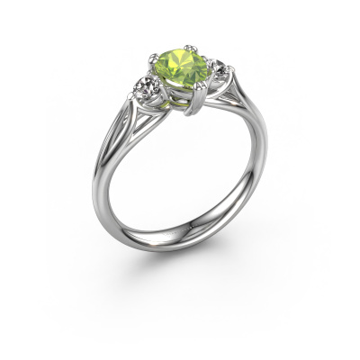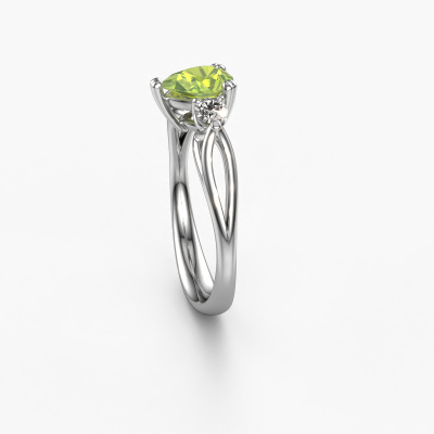 This platinum ring is called Amie per and is set with 7x5 mm peridot. For you, there is only one person in your life who stands out in a crowd. Only one that makes your heart skip a beat. A true gem! She, above all others, deserves a special gift. A unique customized jewel made in her honour. We believe this ring is perfect for your special moment. Each detail of this exclusive platinum 3-stone engagement ring is selected by hand, crafted and polished by our expert goldsmith in our own artisan studio. We strive to achieve the perfect design and composition of the ring, so it enhances the unique features of our peridot, and lets them shine even brighter. It takes a lot of precision to make but in the end it pays off because of the sheer beauty of the ring. And that is our main goal. It's what gets us excited. The great thing about our online tool is, that you can design your own jewellery into a unique, personalized piece. This unique special engagement ring is created with the precious metal combination of platinum and platinum. But of course you are completely free to select other colours. Each piece of jewellery is made by a team of passionate goldsmiths and jewel designers. This will make your crown jewel truly eye-catching.By using a combination of the latest modern techniques, combined with ancient crafting, we can make all our engagement rings in our own studio. Each jewel is made to order. This is advantageous because we can offer you a price you won't find anywhere else.Do you have a specific ring in mind? One you came across somewhere. Please feel free to tell us your wishes and we will turn your design into a unique engagement ring. You can follow the development of your ring design because we use 3D drawings. This gives you a realistic preview of your design. We will gladly send you a non-binding offer, based on a fair price/ quality ratio. It will amaze you.To make it easier for you, we offer a 30 day return policy. Check our terms and conditions.