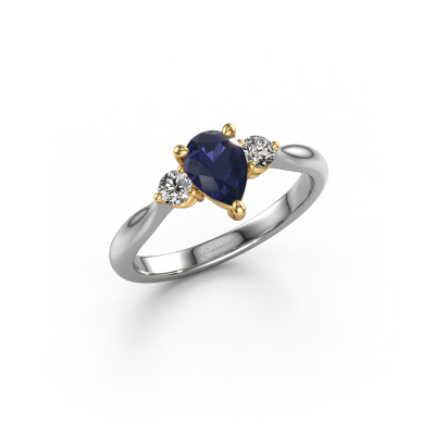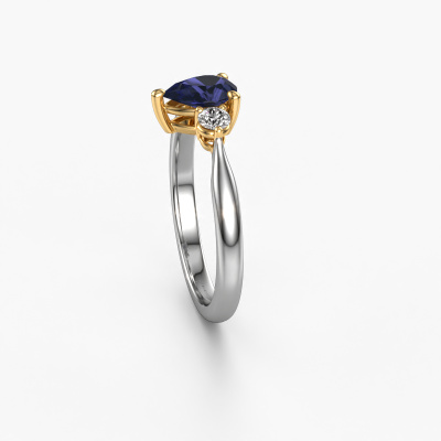 This 14 Carat white gold ring is called Lieselot PER and is set with 7x5 mm sapphire. For you, there is only one person in your life who stands out in a crowd. Only one that makes your heart skip a beat. A true gem! She, above all others, deserves a special gift. A unique customized jewel made in her honour. We believe this ring is perfect for your special moment. Each detail of this exclusive white gold 3-stone engagement ring is selected by hand, crafted and polished by our expert goldsmith in our own artisan studio. We strive to achieve the perfect design and composition of the ring, so it enhances the unique features of our sapphire, and lets them shine even brighter. It takes a lot of precision to make but in the end it pays off because of the sheer beauty of the ring. And that is our main goal. It's what gets us excited. The great thing about our online tool is, that you can design your own jewellery into a unique, personalized piece. This unique special engagement ring is created with the precious metal combination of white gold and gold. But of course you are completely free to select other colours. Each piece of jewellery is made with passion and love by one of our master goldsmiths.Are you on a budget? Please feel free to contact us, so we can go discuss your options. We offer our engagement rings at guaranteed best price, because we make them to order. You won't find such a price anywhere else!Different styles of new rings are made daily by our team. Perhaps you have found a 3-stone engagement ring somewhere. One you would like to give to your loved one. Please feel free to share your thoughts and design with our jewel designers. We would love to turn your design into a fashionable engagement ring. You can follow the development of your ring design because we use very detailed 3D drawings. On top of that, you can order a dummy of the design. A dummy is a plastic ring, which can be shaped according your ring design. You can try it on and check if the engagement ring is up to standard. We will gladly send you a non-binding offer, based on a fair price/ quality ratio. The offer will baffle you, considering the quality of the ring and gemstones.To make it easier for you, we offer a 30 day return policy. Check our terms and conditions.