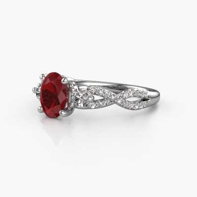 This platinum ring is called Marilou OVL and is set with ruby. Do you keep up with the latest fashion trends? Do you want a unique engagement ring that matches your lifestyle? This tasteful engagement ring is an extraordinary ring which can be custom-made to fit your or her personal style. This contemporary platinum engagement ring is set with ruby. Our ruby are carefully selected for this specific ring in order to create the best effect. Our expert goldsmith will create your ring in our own artisan studio where the ruby will be set with great care. The ring will then be polished to perfection. Nothing but the best for the love of your life! This jewel is made just for you by our master goldsmiths in our own studio.By using our modern techniques, we can design and customize the finest quality jewels with the utmost care for you. Our engagement rings are always priced 30 percent lower than other jewellers. We make engagement rings to order so we don't have to maintain a large stock. If you have a certain budget, we are more than happy to advice you accordingly.Do you have a specific ring in mind? One you came across somewhere. Please feel free to tell us your wishes and we will turn your design into a unique engagement ring. You can follow the development of your ring design because we use 3D drawings. This gives you a realistic preview of your design. We will gladly send you a non-binding offer, based on a fair price/ quality ratio. It will amaze you.To make it easier for you, we offer a 30 day return policy. Check our terms and conditions.
