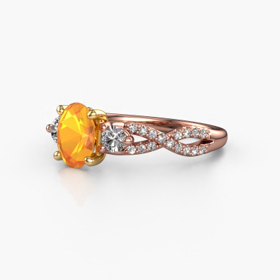 This 14 Carat rose gold ring is called Marilou OVL and is set with citrin. Do you keep up with the latest fashion trends? Do you want a unique engagement ring that matches your lifestyle? This tasteful engagement ring is an extraordinary ring which can be custom-made to fit your or her personal style. This contemporary rose gold engagement ring is set with citrin. Our citrin are carefully selected for this specific ring in order to create the best effect. Our expert goldsmith will create your ring in our own artisan studio where the citrin will be set with great care. The ring will then be polished to perfection. Nothing but the best for the love of your life! This jewel is made just for you by our master goldsmiths in our own studio.By using our modern techniques, we can design and customize the finest quality jewels with the utmost care for you. Our engagement rings are always priced 30 percent lower than other jewellers. We make engagement rings to order so we don't have to maintain a large stock. If you have a certain budget, we are more than happy to advice you accordingly.Do you have a specific ring in mind? One you came across somewhere. Please feel free to tell us your wishes and we will turn your design into a unique engagement ring. You can follow the development of your ring design because we use 3D drawings. This gives you a realistic preview of your design. We will gladly send you a non-binding offer, based on a fair price/ quality ratio. It will amaze you.To make it easier for you, we offer a 30 day return policy. Check our terms and conditions.