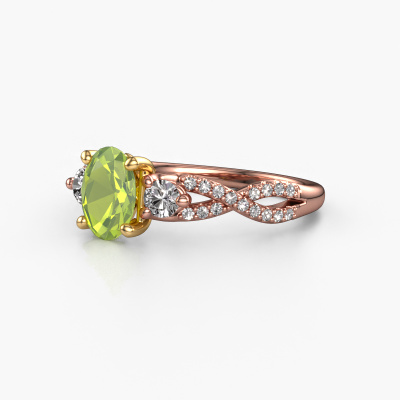 This 14 Carat rose gold ring is called Marilou OVL and is set with peridot. Do you keep up with the latest fashion trends? Do you want a unique engagement ring that matches your lifestyle? This tasteful engagement ring is an extraordinary ring which can be custom-made to fit your or her personal style. This contemporary rose gold engagement ring is set with peridot. Our peridot are carefully selected for this specific ring in order to create the best effect. Our expert goldsmith will create your ring in our own artisan studio where the peridot will be set with great care. The ring will then be polished to perfection. Nothing but the best for the love of your life! This jewel is made just for you by our master goldsmiths in our own studio.By using our modern techniques, we can design and customize the finest quality jewels with the utmost care for you. Our engagement rings are always priced 30 percent lower than other jewellers. We make engagement rings to order so we don't have to maintain a large stock. If you have a certain budget, we are more than happy to advice you accordingly.Do you have a specific ring in mind? One you came across somewhere. Please feel free to tell us your wishes and we will turn your design into a unique engagement ring. You can follow the development of your ring design because we use 3D drawings. This gives you a realistic preview of your design. We will gladly send you a non-binding offer, based on a fair price/ quality ratio. It will amaze you.To make it easier for you, we offer a 30 day return policy. Check our terms and conditions.
