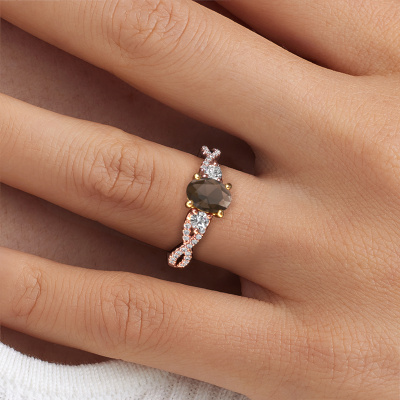 This 14 Carat rose gold ring is called Marilou OVL and is set with smokey quartz. Do you keep up with the latest fashion trends? Do you want a unique engagement ring that matches your lifestyle? This tasteful engagement ring is an extraordinary ring which can be custom-made to fit your or her personal style. This contemporary rose gold engagement ring is set with smokey quartz. Our smokey quartz are carefully selected for this specific ring in order to create the best effect. Our expert goldsmith will create your ring in our own artisan studio where the smokey quartz will be set with great care. The ring will then be polished to perfection. Nothing but the best for the love of your life! This jewel is made just for you by our master goldsmiths in our own studio.By using our modern techniques, we can design and customize the finest quality jewels with the utmost care for you. Our engagement rings are always priced 30 percent lower than other jewellers. We make engagement rings to order so we don't have to maintain a large stock. If you have a certain budget, we are more than happy to advice you accordingly.Do you have a specific ring in mind? One you came across somewhere. Please feel free to tell us your wishes and we will turn your design into a unique engagement ring. You can follow the development of your ring design because we use 3D drawings. This gives you a realistic preview of your design. We will gladly send you a non-binding offer, based on a fair price/ quality ratio. It will amaze you.To make it easier for you, we offer a 30 day return policy. Check our terms and conditions.