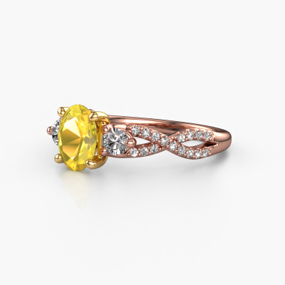 This 14 Carat rose gold ring is called Marilou OVL and is set with yellow sapphire. Do you keep up with the latest fashion trends? Do you want a unique engagement ring that matches your lifestyle? This tasteful engagement ring is an extraordinary ring which can be custom-made to fit your or her personal style. This contemporary rose gold engagement ring is set with yellow sapphire. Our yellow sapphire are carefully selected for this specific ring in order to create the best effect. Our expert goldsmith will create your ring in our own artisan studio where the yellow sapphire will be set with great care. The ring will then be polished to perfection. Nothing but the best for the love of your life! This jewel is made just for you by our master goldsmiths in our own studio.By using our modern techniques, we can design and customize the finest quality jewels with the utmost care for you. Our engagement rings are always priced 30 percent lower than other jewellers. We make engagement rings to order so we don't have to maintain a large stock. If you have a certain budget, we are more than happy to advice you accordingly.Do you have a specific ring in mind? One you came across somewhere. Please feel free to tell us your wishes and we will turn your design into a unique engagement ring. You can follow the development of your ring design because we use 3D drawings. This gives you a realistic preview of your design. We will gladly send you a non-binding offer, based on a fair price/ quality ratio. It will amaze you.To make it easier for you, we offer a 30 day return policy. Check our terms and conditions.