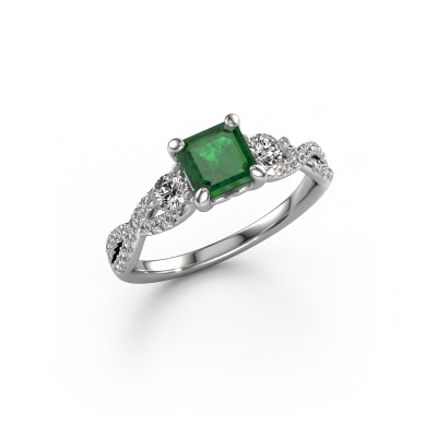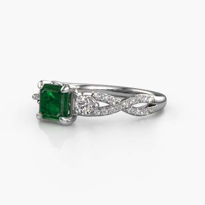 This 14 Carat white gold ring is called Marilou ASC and is set with 5.5 mm emerald. Is your girlfriend hooked on vintage? Then this white gold twisted engagement ring will surely match her style perfectly. A trendy ring with just a hint of luxury adornment. A truly stunning, romantic design! Especially when you customize your ring to your own liking. This luxury 3-stone engagement ring is set with stunning emerald. As you can see, you are the boss in selecting a gemstone which matches the style of your girlfriend best. Each gemstone is carefully selected by our merchants whom are spread throughout the world. Nothing but the best gems for our expert goldsmith. After all, it is his crowning glory! Each jewel is made just for you by our master goldsmiths in our own studio.By using a combination of the latest modern techniques, combined with ancient crafting, we can make all our engagement rings in our own studio. Each jewel is made to order. This is advantageous because we can offer you a price you won't find anywhere else.Our designers and goldsmiths work together each day, creating new jewels. Perhaps you have found a nice luxury engagement ring somewhere, which can be used to customize your unique ring. Please feel free to contact us. We will make you an offer, based on a fair price/ quality ratio, which will amaze you.To make it easier for you, we offer a 30 day return policy. Check our terms and conditions.