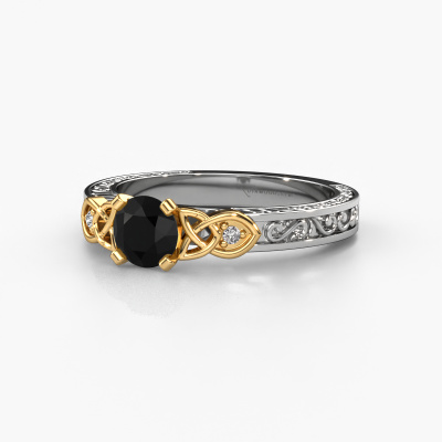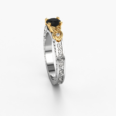This 14 Carat white gold ring is called Gillian and is set with 0.62 crt black diamond. Is your girlfriend hooked on vintage? Then this white gold ajour engagement ring will surely match her style perfectly. A trendy ring with just a hint of vintage adornment. A truly stunning, romantic design! Especially when you customize your ring to your own liking. This vintage 3-stone engagement ring is set with stunning black diamonds. As you can see, you are the boss in selecting a gemstone which matches the style of your girlfriend best. Each gemstone is carefully selected by our merchants whom are spread throughout the world. Nothing but the best gems for our expert goldsmith. After all, it is his crowning glory! Each jewel is made just for you, with attention to detail and design.After receiving your order, our goldsmiths will passionately start the creative process of making your engagement ring in our own studio. Because we don't have a big stockpile, these costs will not be passed on to you. Our pricing is proof of that! We offer top quality jewels at lowest price, guaranteed.Different styles of new rings are made daily by our team. Perhaps you have found a 3-stone engagement ring somewhere. One you would like to give to your loved one. Please feel free to share your thoughts and design with our jewel designers. We would love to turn your design into a vintage engagement ring. You can follow the development of your ring design because we use very detailed 3D drawings. On top of that, you can order a dummy of the design. A dummy is a plastic ring, which can be shaped according your ring design. You can try it on and check if the engagement ring is up to standard. We will gladly send you a non-binding offer, based on a fair price/ quality ratio. The offer will baffle you, considering the quality of the ring and gemstones.To make it easier for you, we offer a 30 day return policy. Check our terms and conditions.