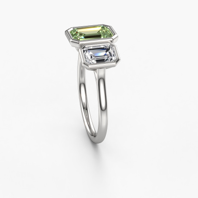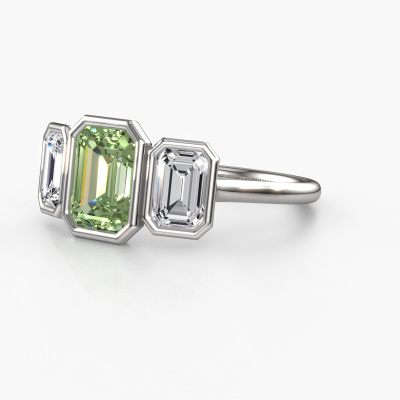 This platinum ring is called Lavon 3 EME and is set with 8x6 mm green lab grown diamond. This exclusive platinum 3-stone engagement ring is a true work of art! The ornaments are crafted with a lot of patience and great passion. In order to create this ring with great precision, this craft requires a keen eye and skilful hand. A challenge which ignites a fire in our expert goldsmith. The exquisite green lab grown diamonds are set in a special way so they stand out even more. This gives the ring an even more glamorous appearance. The special engagement ring is actually unique on its own because of the gemstones which we carefully select especially for this ring. On top of that you select the precious metals which will be used to create a unique ring for the most extraordinary woman in your life! This jewel [extra1_long][bestp1v_long]Do you have a specific ring in mind? One you came across somewhere. Please feel free to tell us your wishes and we will turn your design into a unique engagement ring. You can follow the development of your ring design because we use 3D drawings. This gives you a realistic preview of your design. We will gladly send you a non-binding offer, based on a fair price/ quality ratio. It will amaze you.To make it easier for you, we offer a 30 day return policy. Check our terms and conditions.