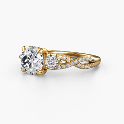 This 14 Carat gold ring is called Marilou RND and is set with 2.02 crt lab grown diamond. This exclusive gold 3-stone engagement ring is a true work of art! The ornaments are crafted with a lot of patience and great passion. In order to create this ring with great precision, this craft requires a keen eye and skilful hand. A challenge which ignites a fire in our expert goldsmith. The exquisite lab-grown diamonds are set in a special way so they stand out even more. This gives the ring an even more glamorous appearance. The split band engagement ring is actually unique on its own because of the gemstones which we carefully select especially for this ring. On top of that you select the precious metals which will be used to create a unique ring for the most extraordinary woman in your life! This jewel is made just for you, with attention to detail and design.Are you on a budget? Please feel free to contact us, so we can go discuss your options. We offer our engagement rings at guaranteed best price, because we make them to order. You won't find such a price anywhere else!Have you found a specific engagement ring somewhere which you would like to give to your loved one? Please feel free to express your wishes to our jewel designers because we would be honoured to turn your design into a fantasy engagement ring. You can follow the development of your ring design because we use 3D drawings. This gives you a realistic preview of how your design will look. You can also preorder a dummy. A dummy is a plastic ring, which can be shaped according your ring design. You can try it on and check if its width and size are suitable for you. We will gladly send you a non-binding offer, based on a fair price/ quality ratio. It will amaze you, considering the quality of the ring and gemstones.To make it easier for you, we offer a 30 day return policy. Check our terms and conditions.