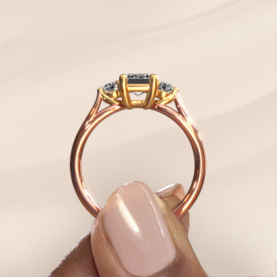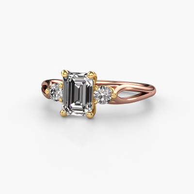 This 14 Carat rose gold ring is called Amie EME and is set with 1.350 crt lab grown diamond. This exclusive rose gold 3-stone engagement ring is a true work of art! The ornaments are crafted with a lot of patience and great passion. In order to create this ring with great precision, this craft requires a keen eye and skilful hand. A challenge which ignites a fire in our expert goldsmith. The exquisite lab-grown diamonds are set in a special way so they stand out even more. This gives the ring an even more glamorous appearance. The tasteful engagement ring is actually unique on its own because of the gemstones which we carefully select especially for this ring. On top of that you select the precious metals which will be used to create a unique ring for the most extraordinary woman in your life! This jewel is made to shine bright around your finger. Each jewel is hand made with love by our goldsmiths.Are you on a budget? Please feel free to contact us, so we can go discuss your options. We offer our engagement rings at guaranteed best price, because we make them to order. You won't find such a price anywhere else!Our team adds new designs to our online collection daily. Our designers and goldsmiths work together in creating the best design. We strive to offer a diverse collection of jewels. Perhaps you have a specific jewel design in mind. One you came across somewhere. Please contact us for a free consultation. We will make you an offer, based on a fair price/ quality ratio, that will baffle you.To make it easier for you, we offer a 30 day return policy. Check our terms and conditions.