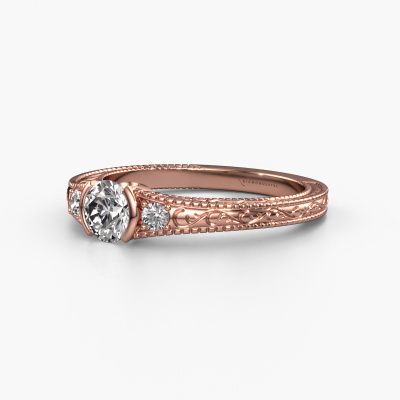 This 14 Carat rose gold ring is called Anamaria and is set with 0.59 crt lab grown diamond. An extraordinary rose gold vintage ring. One that will surely make the love of your life shine like a diamond! That is what we hope to achieve. This vintage engagement ring is set with exquisite lab grown diamond. Whichever gemstone you choose from our selection, is up to you. The gemstone is selected with great care because we believe your filigree engagement ring must be adorned with nothing but the most beautiful gemstone. Wouldn't you agree? Our expert goldsmith will design your ring in our own crafting studio, where the lab grown diamond will be set with great precision. The ring will then be polished till it shines perfectly. Nothing but the best for the love of your life! This jewel is made just for you by our master goldsmiths in our own studio.Are you on a budget? Please feel free to contact us, so we can go discuss your options. We offer our engagement rings at guaranteed best price, because we make them to order. You won't find such a price anywhere else!Our team adds new designs to our online collection daily. Our designers and goldsmiths work together in creating the best design. We strive to offer a diverse collection of jewels. Perhaps you have a specific jewel design in mind. One you came across somewhere. Please contact us for a free consultation. We will make you an offer, based on a fair price/ quality ratio, that will baffle you.To make it easier for you, we offer a 30 day return policy. Check our terms and conditions.