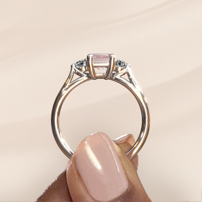 This platinum ring is called Amie EME and is set with 7x5 mm morganite champagne. This exclusive platinum 3-stone engagement ring is a true work of art! The ornaments are crafted with a lot of patience and great passion. In order to create this ring with great precision, this craft requires a keen eye and skilful hand. A challenge which ignites a fire in our expert goldsmith. The exquisite morganite champagne are set in a special way so they stand out even more. This gives the ring an even more glamorous appearance. The tasteful engagement ring is actually unique on its own because of the gemstones which we carefully select especially for this ring. On top of that you select the precious metals which will be used to create a unique ring for the most extraordinary woman in your life! This jewel is made to shine bright around your finger. Each jewel is hand made with love by our goldsmiths.Are you on a budget? Please feel free to contact us, so we can go discuss your options. We offer our engagement rings at guaranteed best price, because we make them to order. You won't find such a price anywhere else!Our team adds new designs to our online collection daily. Our designers and goldsmiths work together in creating the best design. We strive to offer a diverse collection of jewels. Perhaps you have a specific jewel design in mind. One you came across somewhere. Please contact us for a free consultation. We will make you an offer, based on a fair price/ quality ratio, that will baffle you.To make it easier for you, we offer a 30 day return policy. Check our terms and conditions.