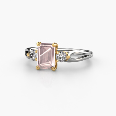 This 14 Carat white gold ring is called Amie EME and is set with 7x5 mm morganite champagne. This exclusive white gold 3-stone engagement ring is a true work of art! The ornaments are crafted with a lot of patience and great passion. In order to create this ring with great precision, this craft requires a keen eye and skilful hand. A challenge which ignites a fire in our expert goldsmith. The exquisite morganite champagne are set in a special way so they stand out even more. This gives the ring an even more glamorous appearance. The tasteful engagement ring is actually unique on its own because of the gemstones which we carefully select especially for this ring. On top of that you select the precious metals which will be used to create a unique ring for the most extraordinary woman in your life! This jewel is made to shine bright around your finger. Each jewel is hand made with love by our goldsmiths.Are you on a budget? Please feel free to contact us, so we can go discuss your options. We offer our engagement rings at guaranteed best price, because we make them to order. You won't find such a price anywhere else!Our team adds new designs to our online collection daily. Our designers and goldsmiths work together in creating the best design. We strive to offer a diverse collection of jewels. Perhaps you have a specific jewel design in mind. One you came across somewhere. Please contact us for a free consultation. We will make you an offer, based on a fair price/ quality ratio, that will baffle you.To make it easier for you, we offer a 30 day return policy. Check our terms and conditions.